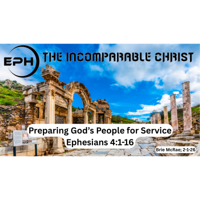 04 Preparing God’s People for Service; Ephesians 4:1-16 February 1, 2026 Brie McRae Discipleship, Evangelism, Service Ephesians, Matthew https://traffic.libsyn.com/christschurchontheriver/04_Preparing_Gods_People_for_Service.mp3 Save Audio Save PDF